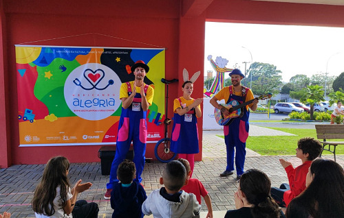 Durante o mês de março, os artistas do projeto Medicando Alegria levaram duas novas apresentações aos corredores e leitos do Hospital Infantil Waldemar Monastier (HIWM), em Campo Largo.
