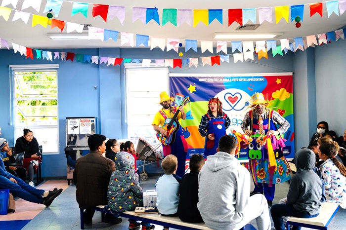Os artistas do projeto Medicando Alegria, com muita sensibilidade e figurinos típicos, enchem de cor o ambiente hospitalar. Entre as brincadeiras e histórias, a do Boi Mamão, por exemplo, que com o boizinho todo feito com materiais recicláveis e muita cor encantam as crianças e familiares. “Nossos artistas trazem cultura e arte sobre as festas juninas. Além de tudo, trazem muitas brincadeiras envolvendo todos e cumprindo com nosso objetivo de deixar esse ambiente mais alegre e com esperança de dias melhores”, destaca o artista Toto Lopes, idealizador do projeto.