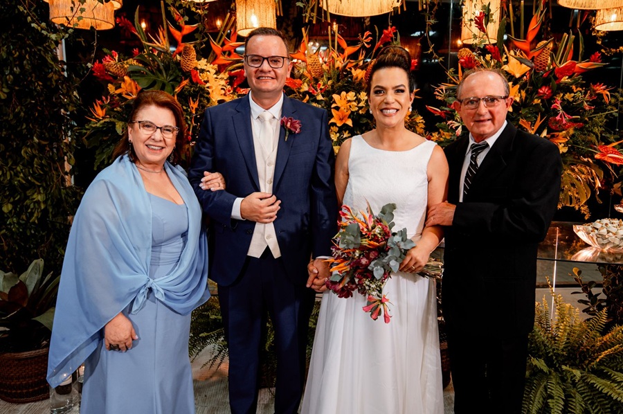 No sábado, 05/04, Ariane Letícia Fior e Dr. Bruno Oliveira de Souza Kryminice se casaram na Capela São Roque, em Campo Largo, rodeados por amigos e familiares. A celebração contou com a participação dos filhos do casal, Maria Clara e João Vicente, que levaram as alianças. Após a cerimônia, a recepção ocorreu no Espaço de Eventos Prata, com decoração vibrante e ambiente integrado à natureza. Os convidados prestigiaram um delicioso jantar e, mais tarde, a festa seguiu ao som da banda Sem Limite. A noite foi inesquecível, marcada pela energia dos convidados e a dedicação dos fornecedores, que tornaram o evento especial. Colaboração: Eliane Jaskievicz Carlesso – assessora e cerimonialista.