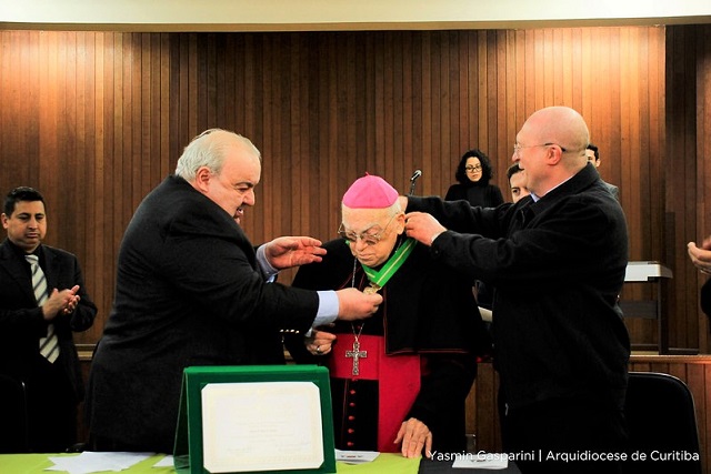 Na mesma cerimônia, Dom Pedro Fedalto foi condecorado com medalha da Ordem da Luz dos Pinhais pelas mãos do prefeito de Curitiba, Rafael Greca.