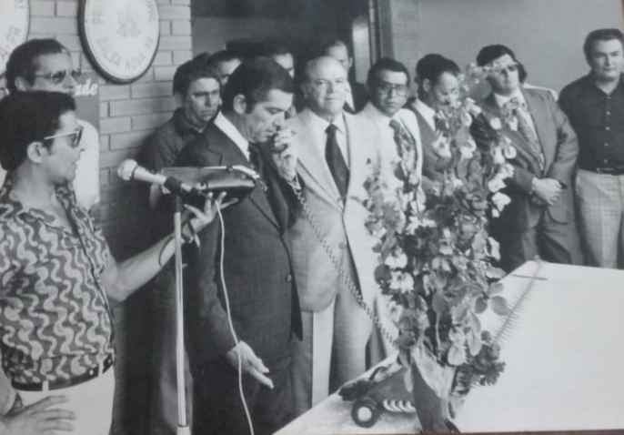 A foto de hoje, enviada pela Professora Maria Helena Franco a quem agradecemos imensamente pela colaboração, é quando foi inaugurada a primeira linha telefônica de Balsa Nova. A cidade criança teve o seu primeiro telefone instalado na prefeitura, na gestão do pai da professora, entre 1969 e 1972. Durante um bom tempo foi o único aparelho da cidade, quem quisesse iria até ele para utilizar.
