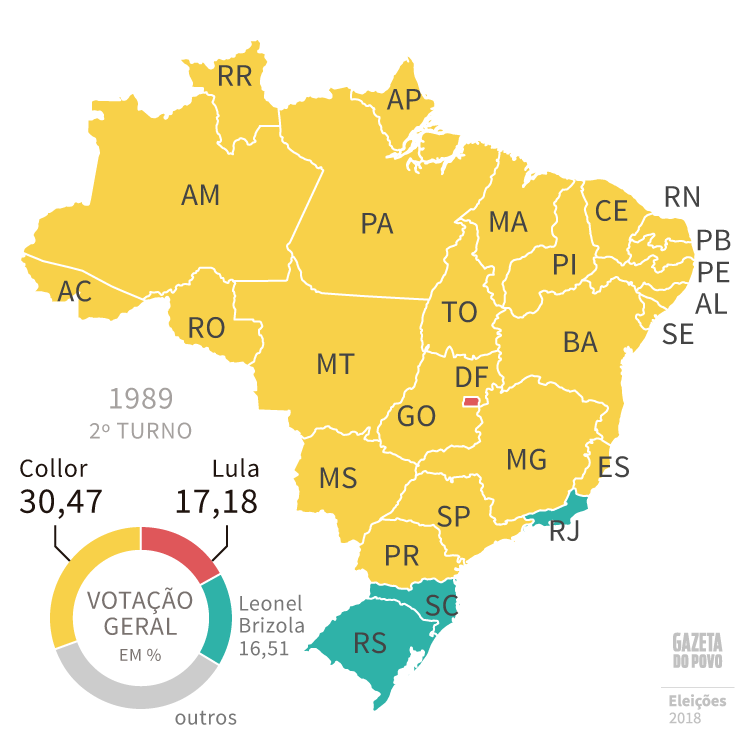 Mapa das eleições do 1º turno de 1989 – fonte Gazeta do Povo