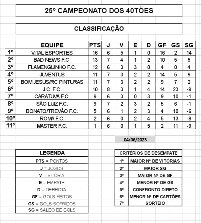 A 12ª rodada do 25º Campeonato dos 40tões –