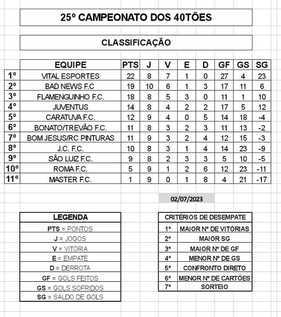 A 10ª rodada adiada do 25º Campeonato 10 dos 40tões –