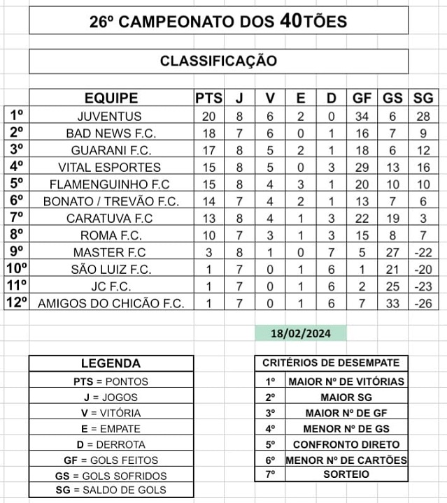 No domingo (18/02), aconteceu a 19ª rodada, com três jogos às 8h30, VITAL ESPORTES 3 x 1 ROMA FC; às 9h45, FLAMENGUINHO FC 4 X 0 SÃO LUIZ FC e às11 horas, JUVENTUS FC 3 x 0 BAD NEWS FC.