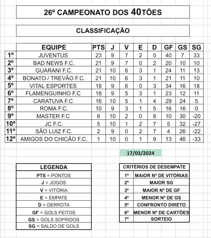 Na tarde de sábado (09/03), pela 12ª rodada do 17º Campeonato 10 Joacir dos 50tões, aconteceram três jogos, no 1º jogo, às 14h00, UNIÃO DE AMIGOS FC 3 x 3 TORONTO FC; no 2º jogo, 15h15, JUVENTUS /SAAD FC 12 x 1 SAAD MASTER FC e 3º jogo, 16h30, ROMA FC 1 x 1 AJAX FC.