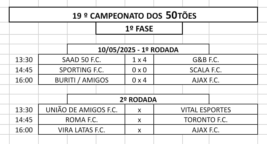 Jogos pelo 27º Campeonato 40tões e pelo 19º Campeonato 50tões, em andamento no final de semana, 17/05 e 18/05, conforme divulgação da tabela pelos organizadores.