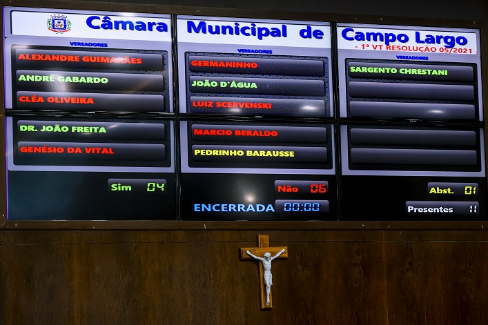 Por maioria de votos, a Câmara de Vereadores de Campo Largo, na sessão do dia 16/08, votou pela manutenção do horário das sessões ordinárias, às 15 horas, mantendo assim o horário anteriormente aprovado na legislatura passada. A iniciativa da alteração de horário através do Projeto de Resolução nº 05/2021 de iniciativa do vereador André Gabardo e apoiado pelos vereadores Dr. João Freita, João d’Água e Sargento Leandro Chrestani foi rejeitado por seis votos a quatro, na primeira votação.