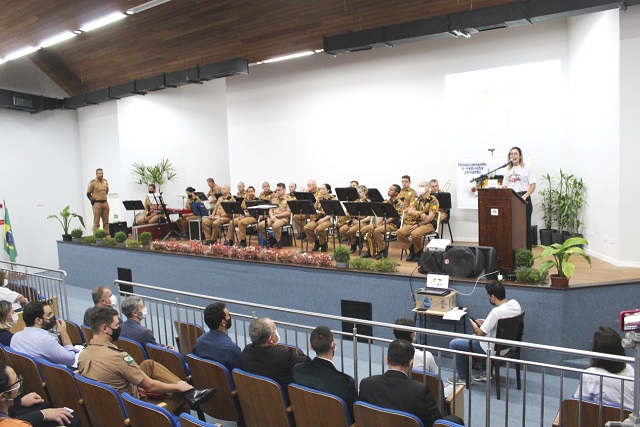 Um dos “presentes” foi a homenagem da Banda da PM a Campo Largo, ao executar o hino do município em sua versão original - conforme a Lei Municipal n° 3.376/2021 (que promoveu a retificação da partitura do Hino de Campo Largo, de acordo com a composição original da letra da Professora Odila Portugal Castagnoli e melodia e arranjo da Professora Dinorah Moares Azevedo).