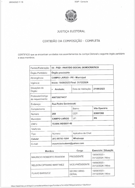 As movimentações partidárias já começaram. A principal delas aconteceu na semana: o prefeito de Campo Largo, Maurício Rivabem, tornou-se presidente do Partido Social Democrático, o PSD, partido do governador do Paraná, Ratinho Júnior, que tem como vice o tio do governador, Nelson Martinez. A chapa já determinou que terá candidato a majoritária e que apoia a reeleição de Maurício Rivabem.