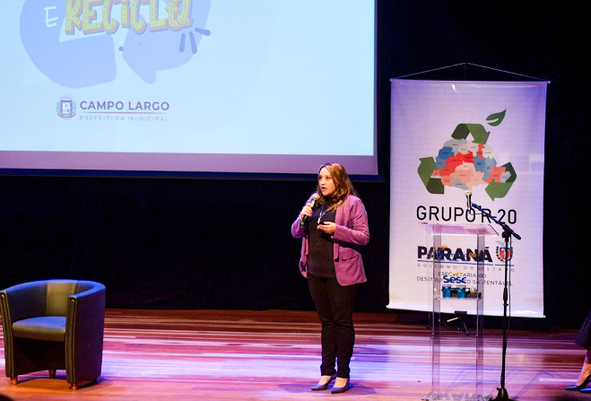 A Família ECO, da Prefeitura de Campo Largo, participou, no dia 07/03, da 18ª reunião do Grupo R-20, a convite da Secretaria de Estado do Desenvolvimento Sustentável e do Turismo. A técnica de Meio Ambiente, Gabrielle Aymeê de Medeiros Khan e a diretora de Comunicação Social, Alessandra Carvalho, representaram o município apresentando o case de educação ambiental Família ECO e o termo de referência para licitação de projeto de comunicação.