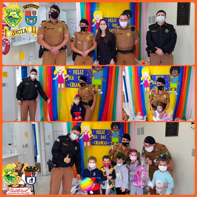 Em comemoração ao Dia das Crianças, a equipe da Polícia Militar (PM) – 3ª Cia/17º Batalhão realizou a entrega de 171 brinquedos, que foram distribuídos aos alunos dos Centros Municipais de Educação Infantil Menino Deus e Curumim, no distrito de Ferraria, em Campo Largo.