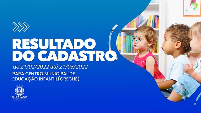 A listagem é referente aos cadastros realizados entre 21/02 e 21/03/2022. Mais informações podem ser obtidas pelo telefone da Secretaria Municipal de Educação de Campo Largo - (41) 3291-5146 (WhatsApp e ligações) ou (41) 3291-5335 (ligações).