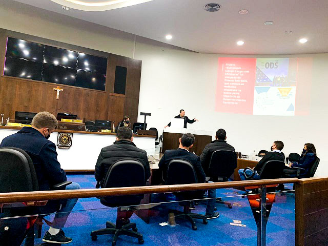 A apresentação foi realizada no plenário da Câmara de Vereadores e contou com a presença dos vereadores André Gabardo, Alexandre Guimarães, Genésio da Vital, Luiz Scervenski, João D’Água, Dr. João Freita e Cléa Oliveira, de assessores do Município e da Câmara, da Secretária Municipal de Governo, Chrystiane Chemin e do Secretário Municipal de Administração, Rafael Rogiski.