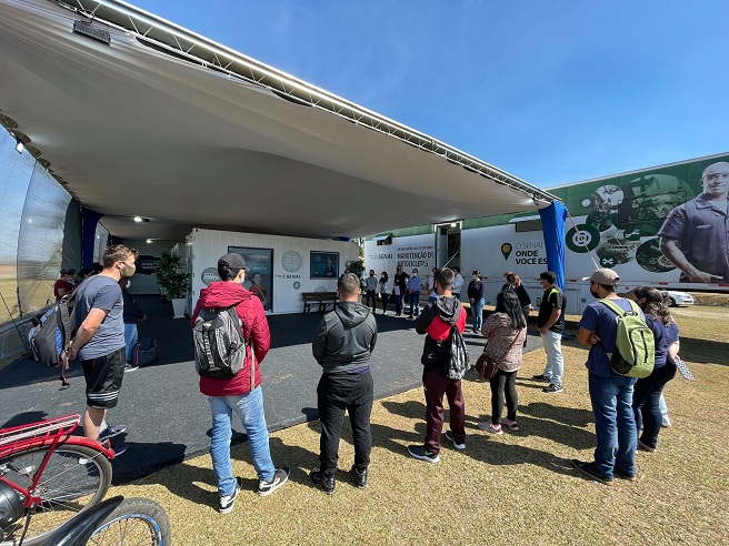 O Prefeito Marcos Zanetti esteve no local onde a base móvel do SESI/SENAI foi instalada. O chefe do executivo acompanhado do Secretário de Administração, Itaboraí Cordeiro, do Vereador Nelio Chiquito e da Secretária de Assistência Social, Mayara Bulow, fez um tour pelas instalações, conhecendo um pouco mais sobre os cursos, através das representantes do SENAI, Bibiana e Silmara.