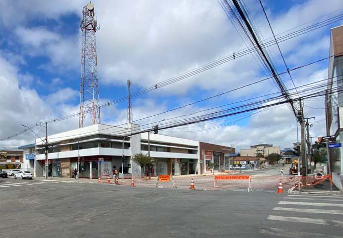 Avenida Vereador Arlindo Chemin, no centro de Campo Largo, teve um trecho bloqueado para obra de pavimentação.