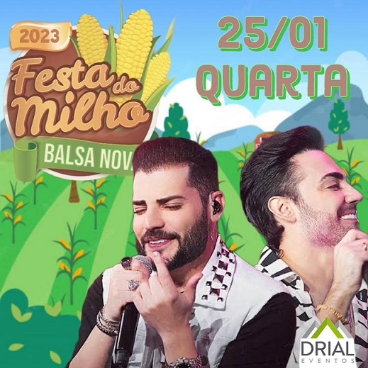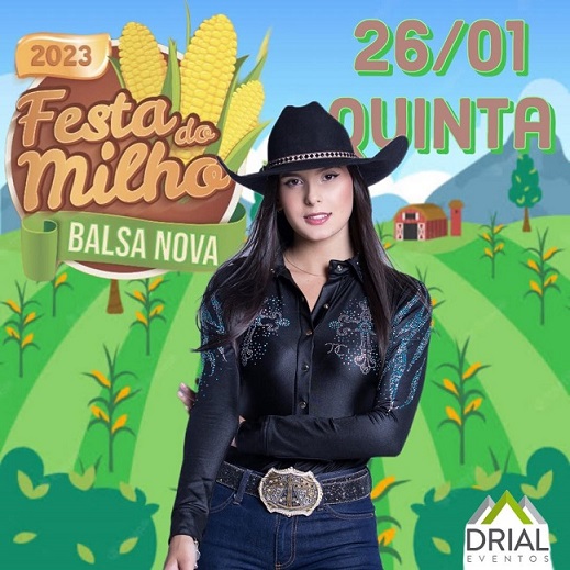 A 24ª edição da Festa do Milho de Balsa Nova acontece entre os dias 25 e 29 de janeiro. Realizada por Drial Eventos em parceria com a Prefeitura de Balsa Nova, a festa contará com várias atrações, que vão movimentar o Centro de Eventos Pedro Besciak: