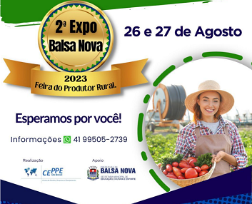 Nos dias 26/08 e 27/08, das 8h às 18h, o Centro de Eventos de Balsa Nova recebe a 2ª edição da Expo Balsa Nova.