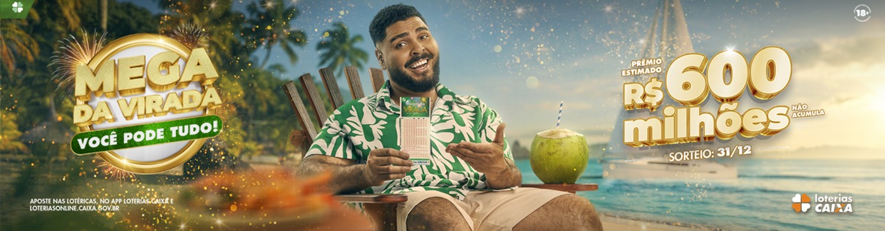 A partir de quarta-feira (18/12), todas as apostas na modalidade da Mega-Sena passarão a ser exclusivas para a Mega da Virada. O prêmio está estimado em R$ 600 milhões e não acumula. Se não houver ganhadores na faixa principal, com acerto de 6 números, o prêmio será dividido entre os acertadores da 2ª faixa (com o acerto de 5 números) e assim por diante.