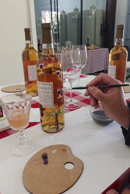 Enquanto a pintura desperta o olhar criativo, o vinho aquece o coração dos participantes. Oferecida pela Vinhos Monjolo, que fica na Colônia Figueiredo