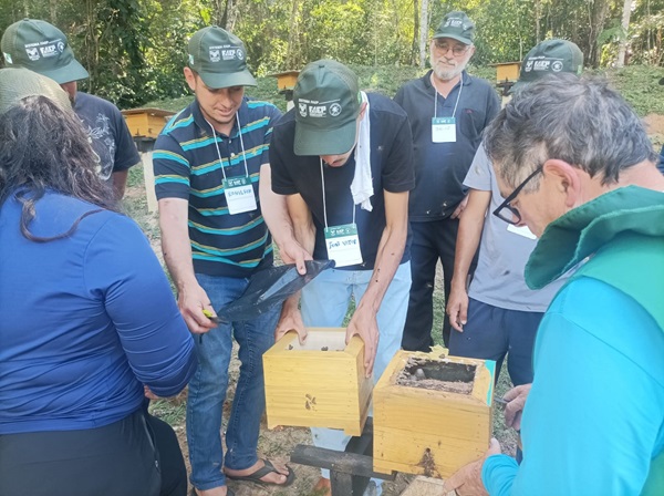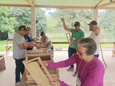 Aprimoramento - Na avaliação dos participantes, os cursos representaram momentos de grande aprendizado, especialmente para os iniciantes na atividade apícola. As capacitações também foram aproveitadas por apicultores e meliponicultores mais experientes que possuem conhecimentos práticos valiosos e contribuíram ativamente para o aprendizado coletivo das duas turmas beneficiadas.