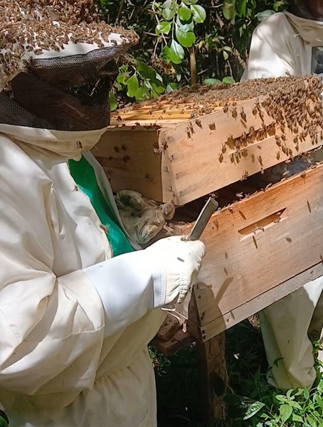 Os cursos também abordaram os diagnósticos das condições de localização e das estruturas existentes nos apiários e dos meliponários visitados, além de capacitarem na avaliação do potencial de produção das colméias e suas colônias de abelhas - observando várias características e detalhes que somente na prática orientada é possível aprender e assim, adequar o que for necessário estruturalmente e nos manejos com os animais.