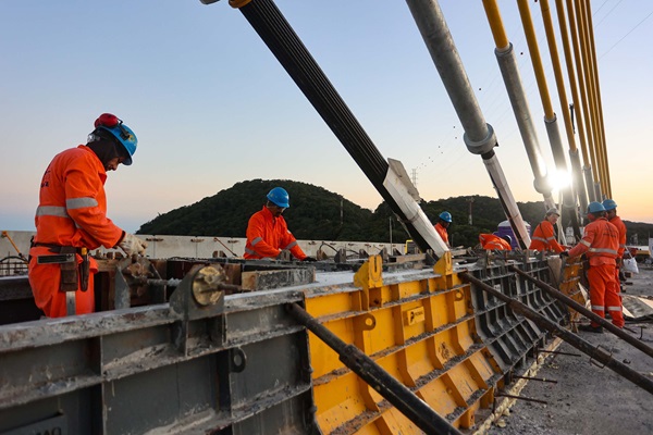 Para apoiar o trabalho, que acontece 24 horas por dia, foram utilizadas cinco embarcações que prestaram suporte náutico, o que inclui balsas com guindastes executando as fundações e balsas de apoio para transporte de caminhões betoneiras com concreto e armação para as estruturas.
