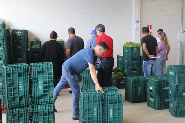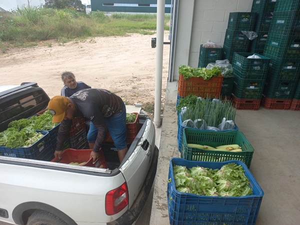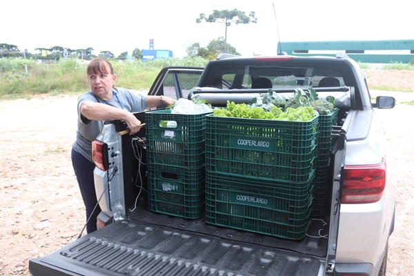 Uma das entregas foi da produtora Ana Cláudia Kimieski, moradora do bairro Fazendinha, que destacou justamente o cuidado prévio para que os produtos estejam frescos na data combinada. “Um dia antes da entrega regamos novamente, as alfaces, e ainda teve uma chuva que caiu e ajudou também na conservação. É muito importante a realização da entrega ser rápida também para as entidades”, destacou a experiente produtora que já realiza entregas regulares para comércios locais. Essa organização é crucial para garantir itens sempre frescos, da horta direto para a mesa das entidades habilitadas.
