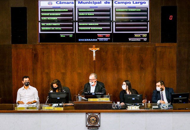 A primeira sessão ordinária do mês de maio da Câmara Municipal de Campo Largo aconteceu, na segunda-feira (03/05), com início às 15 horas, no Plenário Alberto Klemes, tendo como presidente o vereador Pedro Barausse, como secretária a vereadora Cléa Oliveira e vice-presidente, vereador Genésio da Vital, na mesa diretora. A reunião seguiu as determinações sanitárias com aplicação das restrições impostas devido a pandemia do COVID 19 e observando as normas do regimento interno do Legislativo Municipal. Os assuntos constantes da pauta foram lidos, votados ou encaminhados às comissões competentes, sendo 01 (um) Projetos de Lei do Executivo, 01 (um) Projeto de Decreto Legislativo, 06 (seis) Projetos de Lei do Legislativo e 07 (sete) projetos de indicação de vereadores. Os vereadores, votam em conjunto, 38 (trinta e oito) requerimentos. No início da sessão, os parlamentares votam pela aprovação da ata da sessão ordinária realizada no dia 26/04, após leitura e discussão em plenário.