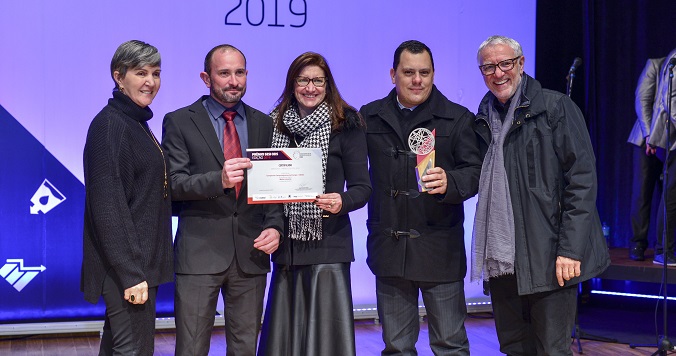 com o troféu do Prêmio ANEEL de Ouvidoria 2019.