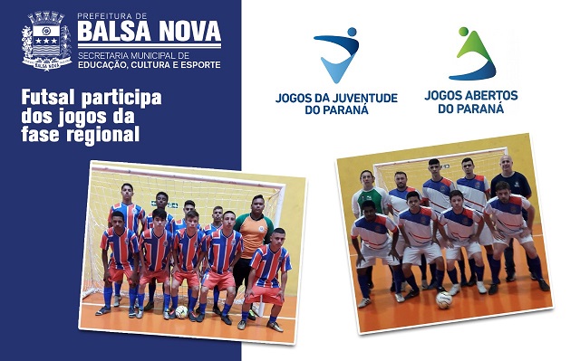 O final de semana dos dias 11 e 12 de setembro foi marcado por participações das equipes de futsal do município de Balsa Nova nos Jogos da Juventude e nos Jogos Abertos do Paraná, os dois em suas etapas regionais.
