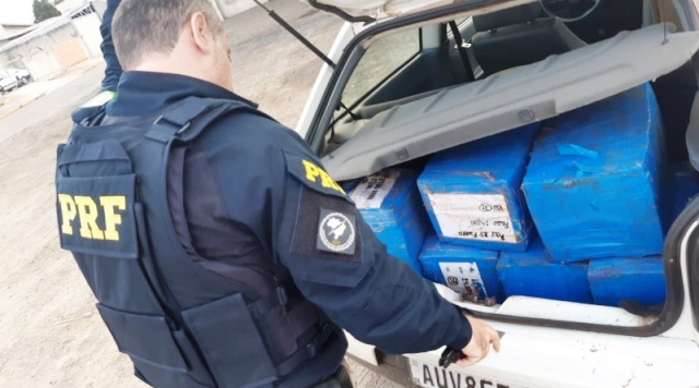 No carro, estavam sendo transportados 264,9 quilos de maconha, que segundo o traficante, de 27 anos, morador de Cascavel (PR), a retirou, em Foz do Iguaçu (PR) e a levaria até Curitiba (PR).