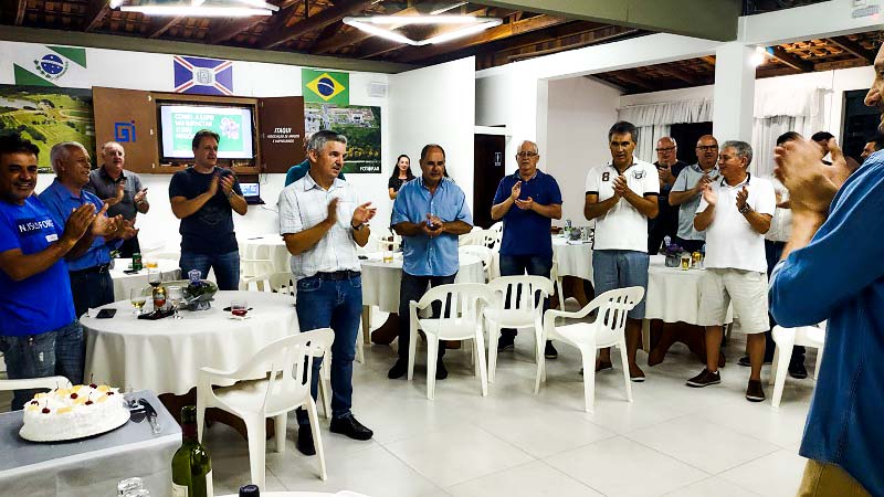 Na oportunidade, com o bolo e a “champanhe”, os presentes cantaram o tradicional “Parabéns a Você”. O presidente Marcelo Weber e o presidente de Honra, Edson Ribeiro falaram sobre as reuniões iniciais e os agradecimentos a todos aqueles que tiveram a feliz ideia da fundação da IAAE.