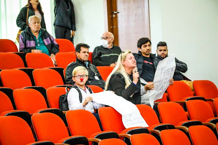 A terceira sessão ordinária do mês de maio da Câmara Municipal de Campo Largo, do dia 16/05, foi marcada por manifestação contra projetos do poder executivo nos trabalhos legislativos. Na pauta constavam 07 (sete) Projetos de Lei do Executivo, dos quais cinco deles entraram em votação, com pedido de Regime de Urgência do vereador Dr. João Freita, aprovado por maioria. Várias pessoas da plateia com postura contrária aos projetos de autoria do prefeito Maurício Rivabem e também, contra o pedido de Regime de Urgência do vereador Dr. João Freira, líder do prefeito, se manifestaram na sessão com palavras de ordem, cartazes e contestações em voz alta. Com o prejuízo no andamento dos trabalhos, onde o vereador Dr. João Freita, no uso da palavra na Tribuna da Casa de Leis, foi interrompido em seu pronunciamento de defesa das matérias, o presidente da Câmara, vereador Pedrinho Barausse, suspendeu a sessão e requisitou a presença de agentes da Guarda Municipal para dar continuidade as discussões e às votações dos projetos.