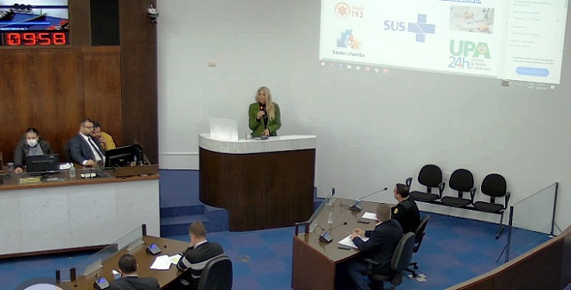 Após, Danielle falou sobre as ações de melhorias no setor de Atenção Primária, destacando os atendimentos referentes à Covid nas UBS com realização de TR-antígeno em seis UBS urbanas e cinco UBS do interior; ampliação das equipes de Atenção Primária (uma equipe na UBS Rivabem, uma equipe na UBS Dante e uma equipe na UBS Itaboa); além de contratações na Atenção Primária (um médico 40 horas na UBS Águas Claras e Vila Glória), técnicos de Enfermagem e agentes comunitários novos.