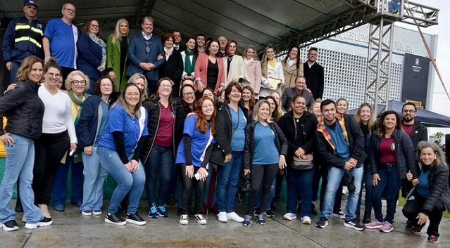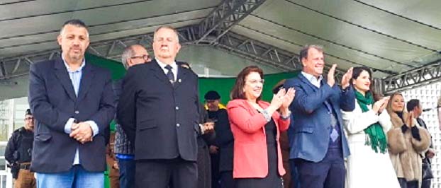 O palco do cerimonial, instalado em frente ao Centro Integrado de Operações de Segurança Pública (CIOSP), contou com a presença do prefeito municipal, Maurício Rivabem, da primeira-dama, Alaina Baroni Rivabem, do presidente da Câmara, vereador Pedrinho Barausse, vereadores, secretários municipais e outras autoridades civis e militares.