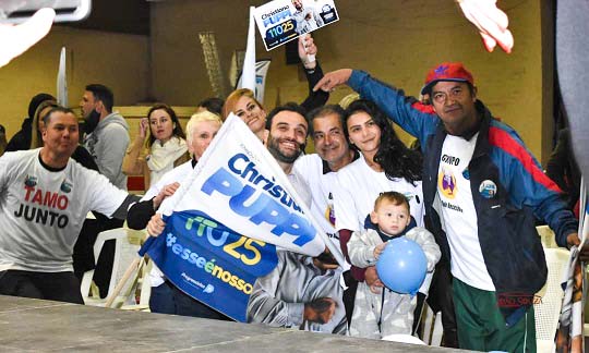 A dobradinha Cristiano Puppi (estadual) e Newton Bonin (federal). As lideranças políticas do União Brasil municipal, juntaram as forças do DEM com o PSL, de 2018, para garantir uma boa votação.