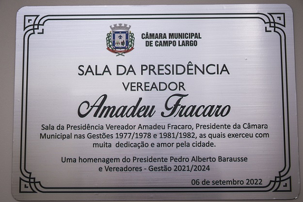 Em homenagem póstuma, foram nominados dois importantes espaços da Câmara Municipal de Campo Largo – a Sala da Presidência recebeu o nome de Amadeu Fracaro e o Plenarinho (sala de reuniões de vereadores), de Alfredo Ivo Gadens. O autor da iniciativa foi o presidente da Casa de Leis, vereador Pedrinho Barausse. “Tivemos a honra de homenagear duas pessoas que marcaram época em nosso município, que amavam nossa querida Campo Largo e tiveram como missão lutar por nossa terra”, afirmou Pedrinho.