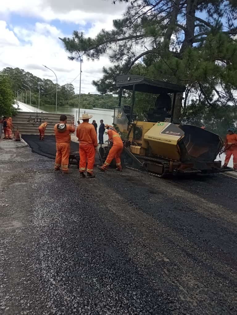A Secretaria Municipal de Obras Viárias executou a pavimentação de aproximadamente 100 m e alargou o leito da via para estacionamento de veículos e em especial, para os turistas que são aficionados da pesca. A pavimentação do trecho recebeu o mesmo padrão utilizado em outras vias do município, como meio fio, sub base, base e camada de CBUQ. O secretário Paulo Rogério Alves esclarece que o acesso e uso da ponte só será permitido após a conclusão e inauguração da obra. A construtora, ainda, não finalizou os acabamentos e a instalação de proteção e segurança. A parceria entre os municípios banhados pela represa permitiu que a obra fosse executada com um investimento de 80% por parte de Araucária e 20% por parte de Campo Largo. O prefeito Maurício Rivabem visitando a obra destacou a qualidade dos serviços executados e que com certeza irá beneficiar a população campo-larguense e todos os usuários, garantindo mobilidade e segurança.