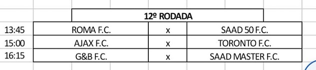 Na tarde de sábado, 03 /12, o campeonato na categoria 50tões apresentou três jogos, pela 11ª rodada, com BR TELHAS FC 1 x 1 UNIÃO DE AMIGOS FC; VITAL ESPORTES 1 X 0 ROMA FC e BURITI FC 5 X 0 SAAD 50 FC.