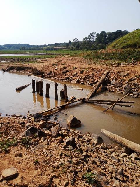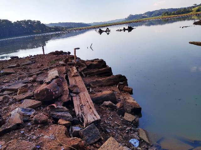 Entre os “tesouros” revelados pela seca, estão escombros de construções antigas. Há vestígios da antiga ponte no local, que estava submersa há décadas, e agora faz parte novamente da paisagem, resgatando a história na cidade.