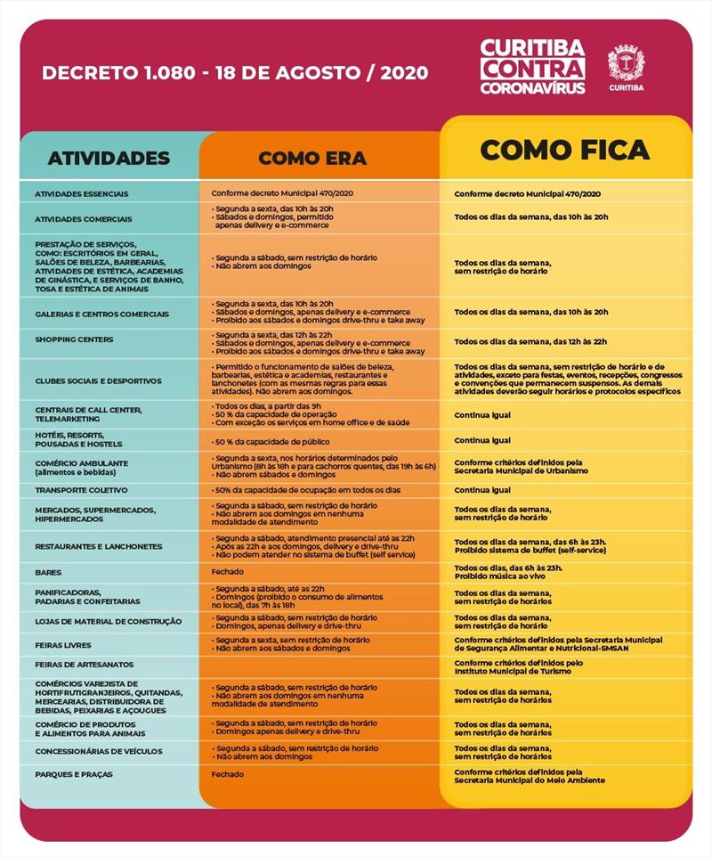- Os bares, que estavam suspensos, voltam seguindo as mesmas regras de restaurantes e lanchonetes, mas não poderão funcionar com música ao vivo.