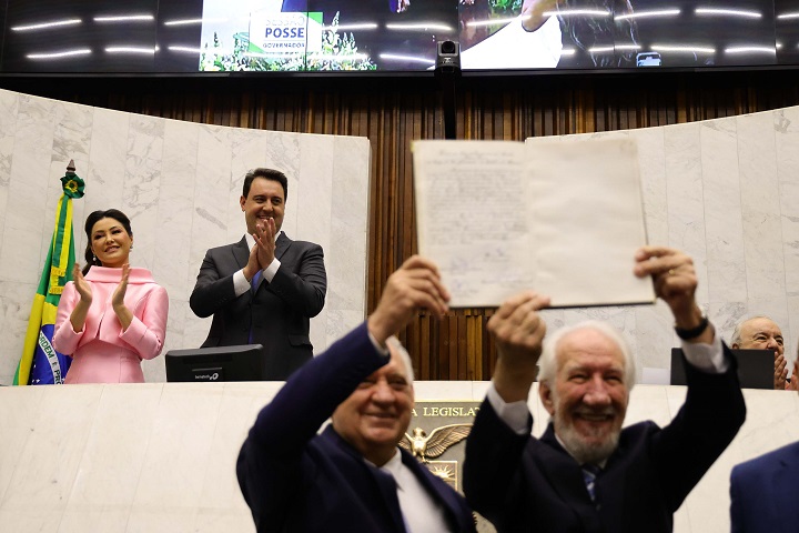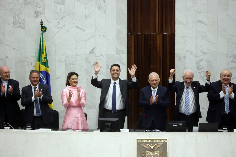 O governador Carlos Massa Ratinho Junior e seu vice, Darci Piana, foram empossados no domingo (1º/01/2023) para o segundo mandato consecutivo à frente do Governo do Paraná. A cerimônia ocorreu na Assembleia Legislativa do Paraná (Alep), onde ele proferiu o juramento e assinou o termo de posse junto da Mesa Diretora da Casa.