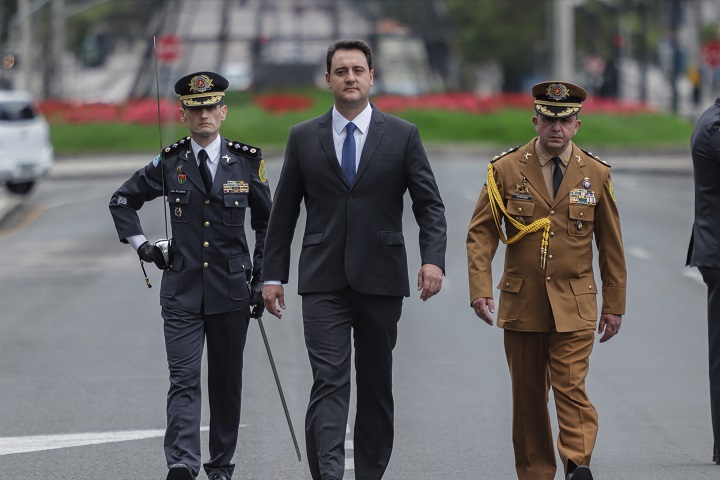 Após o encerramento da sessão solene de posse, o governador e o vice-governador deixaram a Alep rumo ao Palácio Iguaçu. No caminho, o governador fez a tradicional revista à tropa da Polícia Militar do Paraná, na Avenida Cândido de Abreu, ao lado do chefe da Casa Militar, o tenente-coronel Sérgio Vieira Benício.