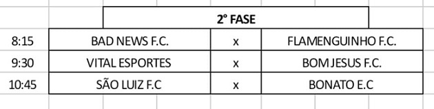 CHAVE B: Três Jardins, Independente São Mateus, Parma FC