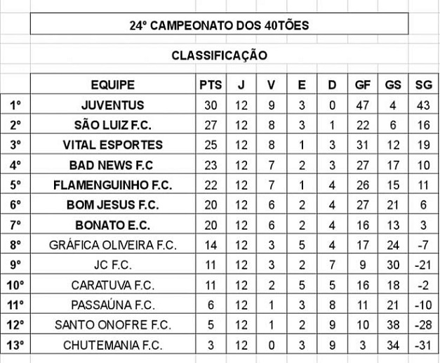 Classificação 40