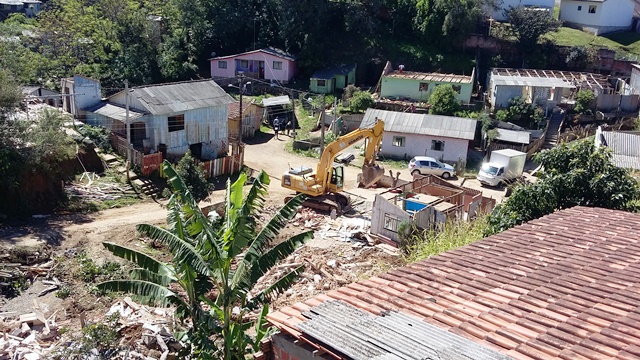 O serviço de demolição das antigas construções com máquinas da prefeitura levará algumas semanas, visto que os moradores estão desmontando as partes aproveitáveis, como telhas, tabuas, vigamentos e demais utensílios.