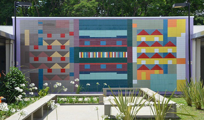 “As linhas e traços foram criados através de relatos de pessoas que trabalham na CMB. Cada cor conta uma história e carrega muitos simbolismos. Foi graças à paleta completa da Roca Brasil Cerámica que consegui compor um painel tão rico”, conta Marta Berger, que idealizou a obra em três momentos.