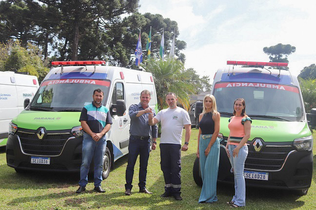 Já os deputados estaduais Ademar Traiano e Cristina Silvestri destinaram as verbas estaduais por meio da Resolução nº 1.067/2021 da Secretaria de Estado de Saúde (SESA). Tal resolução trata dos municípios habilitados a pleitearem a adesão aos Programas Estratégicos da SESA – Qualificação da Atenção Primária, visando o incentivo financeiro de investimento para o transporte sanitário - Ambulância Tipo B de suporte básico, cada uma no valor de 170 mil reais. Além das emendas, o município fez uma complementação de valor de 80 mil reais para cada ambulância, somando no total o valor de um milhão de reais.