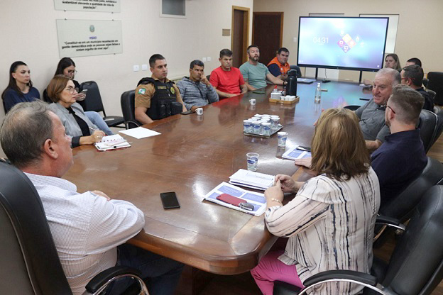 O prefeito Maurício Rivabem e a secretária de Educação estiveram ainda na segunda-feira com representantes da Guarda Municipal, do Centro Integrado de Operações de Segurança Pública (CIOSP), Polícia Civil, Polícia Militar, Corpo de Bombeiros e Defesa Civil para buscar soluções que proporcionem mais segurança nas escolas.